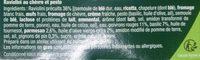 Ingredients: Raviolini précuits 36% [(semoule de blé dur, eau, ricotta, chapelure (dont blé), fromage blanc frais, œufs frais, _fromag_e de chèvre, crème fraîche, pesto (basilic, huile_ d'olive, ail), semoule de blé, lactose et protéines de lait, emmental, arôme (dont lait), sel, amidon transformé de pomme de terre, poivre), eau, huile fe colza, sel], eau, poivrons rouges_1_1,%, basilic 7%, huile de tournesol, parmesan 2,6%, huile d'olive vierge extra 2%, amidon transformé de pomme de terre, sel, ail, pignons de pin 0,3%, sucre, arôme naturel et poivre.