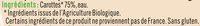 Ingredients: Carottes* 75%, eau. *Ingrédients issus de l'agricultures biologique. Sans gluten.