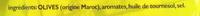 Ingredients: Olives (origine Maroc), aromates, huile de tournesol, sel.