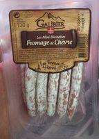 Ingredients: Viande de porc (190 g mis en œuvre pour 100 g de produit fini), fromage de chèvre : LAIT de chèvre, sel, ferments lactiques, coagulant (7 g de mise en œuvre pour 100 g de produit fini), LACTOSE, sel, saccharose, dextrose, épices et plante aromatique, arômes naturels, conservateurs : nitrate de potassium - nitrite de sodium. Boyau en fibre animale.