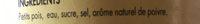 Ingredients: Petits pois, eau, sucre, sel, arĂ´me naturel de poivre.