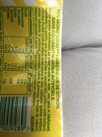 Ingredients: MOINS SUCRÉ*" @ AVEC DIJ JUS DE CITRON SANS COLORANT NI ARÔME ARTIFICIELS Boisson gazeuse rafraîchissante aux arômes naturels de citron , avec sucre et édulcorant. -gagrédients: Eau gazéifiée, sucre, jus de citron à basede concentré (6%), acidifiant (acide malique), correcteur d'acidité (citrate de sodium), arômes naturels de citron, stabilisants (gomme arabique, acétate isobutyrate de saccharose), conservateurs (sorbate de potassium, benzoate de sodium), édulcorant (glycosides de stéviol). *** que la moyenne des sodas sans édulcorant. ULLEOIOO aleursnutritionnelles pour100ml pour250mI* our250mt* 83 2%