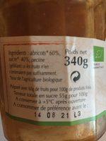 Ingredients: Abricot* 60%, sucre* 40%, pectines (gélifiant) si les fruits n'en contenaient pas suffisamment.