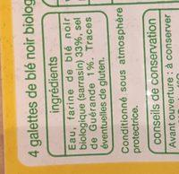 Ingredients: Eau, farine de blé noir biologique (sarrasin) 33%, sel de Guérande 1%,