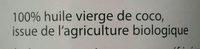 Ingredients: 100% huile vierge de coco, issue de l'agriculture biolog La chair de coco fraiche