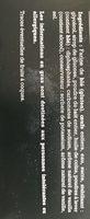Ingredients: Farine de blé (gluten), œufs entiers, eau, sucre, stabilisant : glycérol, sirop de glucose, poudre de lait entier, huile de colza, poudres à lever (contient blé) : diphosphates, carbonates de sodium, arôme naturel de vanille (contient alcool), conservateur : sorbate de potassium, arôme naturel devanille, sel. Les informations en gras sont destinées aux personnes intolérantes ou allergiques. Traces éventuelles de fruits à coques.