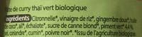 Ingredients: Citronnelle, vinaigre de riz, gingembre doux, huile de coco, ail, échalote, sucre de canne blond, piment vert 4,4 %, sel, coriandre, cumin, poivre noir.