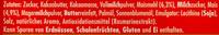 Ingredients: Zucker, Kakaobutter, Kakaomasse, Vollmilchpulver, Maismehl (6,3%), Milchzucker, Mais (4,9%), Magermilchpulver, Butterreinfett, Palmöl, Sonneblumenöl, Emulgator: Lecithine (Soja), Salz, natürliches Aroma, Antioxidationsmittel (Rosmarinextrakt)