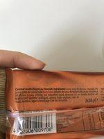 Ingredients: sucre, sirop de glucose, chocolat 27% (sucre, pâte de cacao, huile butyrique, poudre de cacao fortement dégraissée, émulsifiant (lécithines (soja)), arôme), lait concentré sucré, dextrose, lait en poudre écrémé, sel, épaississant (gomme arabique), arôme, huile végétale (noix de coco), dextrine, agent d'enrobage (cire de carnauba).
