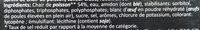 Ingredients: Chair de poisson 54 %, eau, amidon (dont blé), stabilisants : sorbitol, diphosphates, triphosphates, polyphosphates ; blanc d'œuf en poudre réhydraté (œufs de poules élevées en plein air), sucre, sel, arômes, chlorure de potassium, colorant : lycopène ; émulsifiant : lécithine (contient soja).