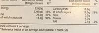 | Nutrition Label | As sold for 100 g / 100 ml | As sold per serving (100 g) |