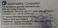Ingredients: SaunonAtlantiqUe 97% Ecosse), sel, fumée de bois de hêtre