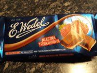 Ingredients: Chocolat au lait 50 % (sucre, beurre de cacao, lait entier, cacao, lactosérum séché (lait), graisse de lait, émulsifiant: lécithine de soja et E476, arôme), sucre, graisse végétale (palme), pulpe de pomme concentrée, préparation fraise (Sirop de glucose-fructose, Sucre, Amidon modifié, Jus de fraise concentré, Acide: acide citrique, Stabilisateur: pectines, Aromatisant, Couleur: carmins), lait entier sec, Lactoside séché (du lait), Humectant (sorbitols), Alcool (0,3 %), aromatisant, émulsifiant (lécithine de soja), concentré de jus de sureau, régulateur d'acidité (acide citrique).