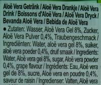 Ingredients: Eau, Aloë Vera gel de 8%, sucre, Aloë Vera en poudre 0,4%, saveur de raisin