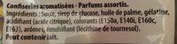 Ingredients: Sucre, sirop de glucose, huile de palme, gélatine, acidifiant (acide citrique), colorants (El 50a, El 40i, El 60c, El 63), arômes, émulsifiant (lécithine de tournesol). Peut contenir lait.