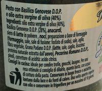 Ingredients: Huile d’olive vierge extra, basilic, noix, préparation à base de fromage, sel, fibres végétales, acide citrique, protéines naturelles d’œuf, noix de cajou, lait, phosphate de sodium.
