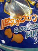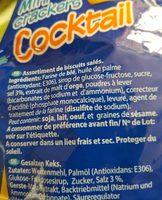 Ingredients: Farine de blé, huile de palme (antioxydant: E306), sirop de glucose-fructose, sucre, sel 3 %, extrait de malt d'orge, poudres à lever, (bicarbonates de sodium et d'ammonium), correcteur d'acidité (phosphate monocalcique), levure, agent de traitement de la farine (disulfite de sodium).