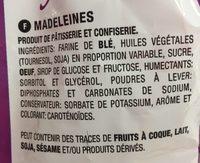 Ingredients: FARINE DE BLÉ, HUILES VÉGÉTALES (TOURNESOL, SOJA) EN PROPORTION VARIABLE, SUCRE, OEUF, SIROP DE GLUCOSE ET FRUCTOSE, HUMECTANTS: SORBITOL ET GLYCÉROL, POUDRES À LEVER,' DIPHOSPHATES ET CARBONATES DE SODIUM, CONSERVATEUR: SORBATE DE POTASSIUM, ARÔME ET COLORANT: CAROTÉNOÏDES PEUT CONTENIR DES TRACES DE FRUITS À COQUE, LAIT, SOJA, SÉSAME ET/OU PRODUITS DÉRIVÉS