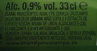 Cerveza Cruzcampo Shandy Limon 0'9% 33CL Ingredients