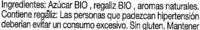 Ingredients: Azúcar*, regaliz* y aromas naturales. (* Ingredientes procedentes de la agricultura ecológica).