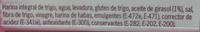 Ingredients: Harina integral de trigo,agua, levadura, gluten de trigo, aceite de girasol (1 %), sal, fibra de trigo, vinagre, harina de habas, emulgentes (E472e, E47l), corrector de acidez (E341iii) antioxidante (E300), conservantes (E-282, E-202, E-200)