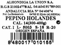 Ingredients: Pepino holandés. CategorÃa: I. Calibre: 14 )300-400 g)