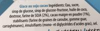 Ingredients: Eau, sucre, sirop de glucose, sirop de glucose-fructose, huile de coco, dextrose, farine de SOJA (2%), cacao maigre en poudre (1%), stabilisants (farine de graines de caroube, gomme guar, carraghénanes), émulsifiants (mono- et diglycérides d'acides gras), sel.
