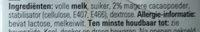 Ingredients: volle melk, suiker, 2% magere cacaopoeder, stabilisator (cellulose, E407, E466), dextrose