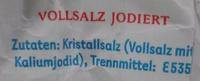 Ingredients: Kristallsalz (Vollsalz mit Kaliumjodid), Trennmittel: E535.