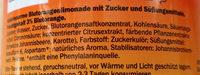 Ingredients: Wasser, Zucker, Blutorangensaftkonzentrat, Kohlensäure, Säuerungsmittel: Citronensäure; konzentrierter Citrusextrakt, färbende Pflanzenextrakte (Schwarze Johannisbeere, Karotte), Farbstoff: Zuckerkulör; Süßungsmittel: Acesulfam K. Aspartam*; natürliches Aroma, Stabilisatoren: Johannisbrotkernmehl, Pektine *enthält eine Phenylalaninquelle