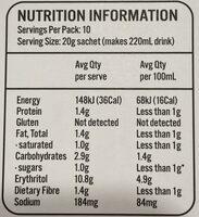 Hot Chocolate 99% Sugar Free Nutrition Label